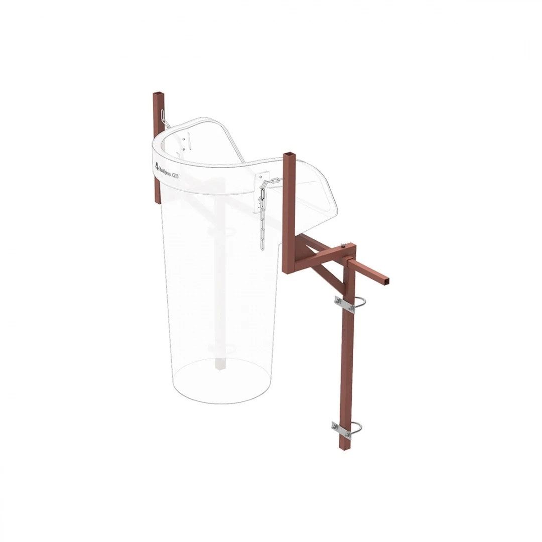 Металлический разборный кронштейн, предназначенный для крепления пластиковых элементов строительных мусоропроводов к строительным лесам различной ширины, от 700 до 1500 мм.