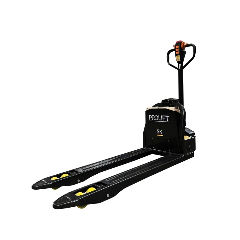 Тележка PROLIFT M2 SK20L M2 — самоходная сопровождаемая модель грузоподъемностью 2000 кг. Преимуществом является наличие функций «черепашьего» хода и реверсивного торможения, дополнительных упоров. Специальная система предотвращает откат тележки на поверхностях с уклоном. Тяговый электродвигатель и ведущее колесо закрыты защитными кожухами.