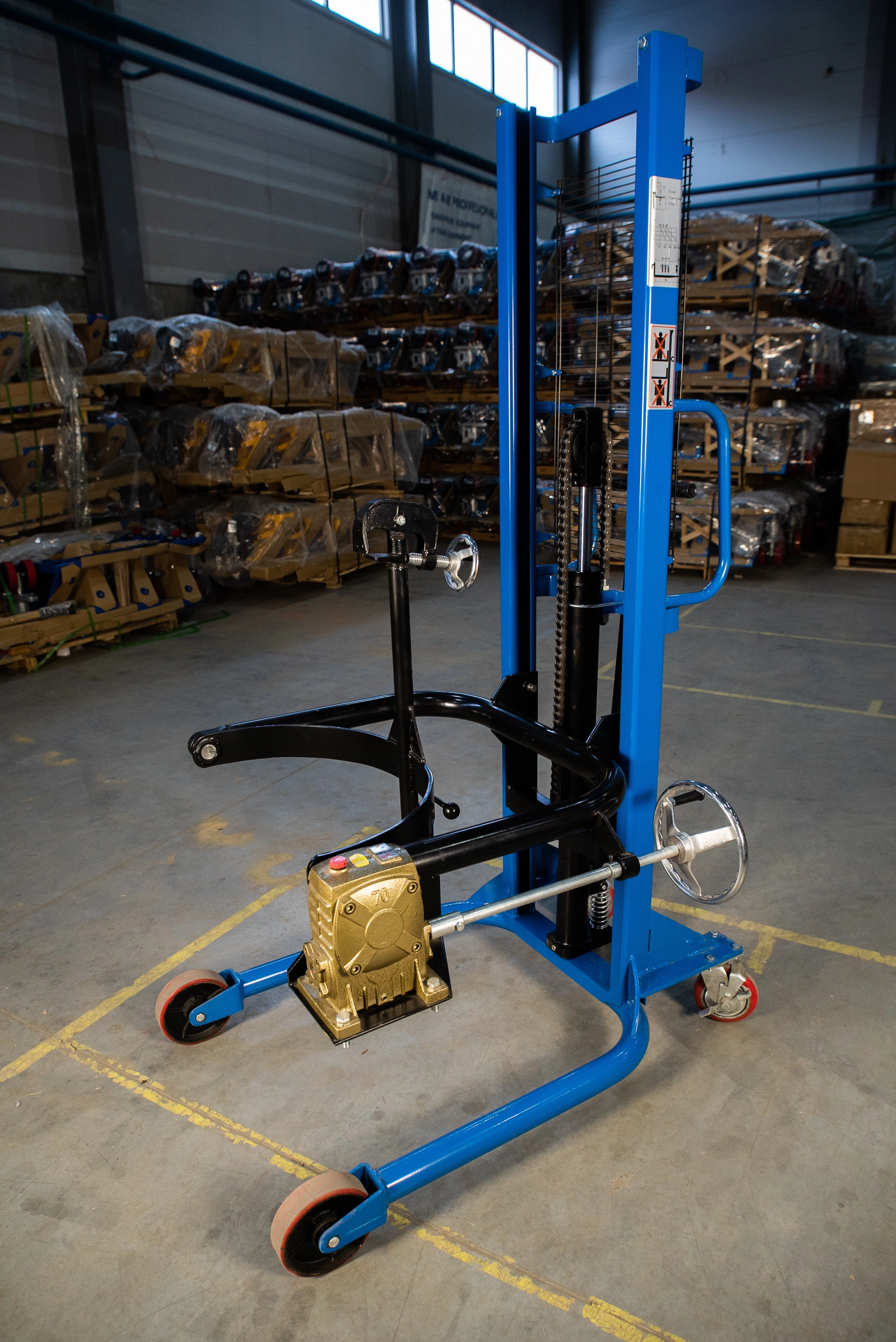 Штабелер бочкокантователь TOR СОТ 0.35Т/2.5М— Специальный штабелер, сделанный для поднятия, перевозки и кантования (наклона, переворота) бочек. Модель оснащена надежным держателем бочек и червячным ручным редуктором для переворота бочки. Штабелер простой в обращении и не прихотлив в обслуживании. Максимальный вес бочки может быть 350 кг, что в принципе покрывает практически все материалы, тарированные в бочки. К минусам данной модели можно отнести лишь то, что бочку брать и ставить мы можем только с ровных площадок: пол, полки. С помощью этого штабелера не получиться работать с бочками с паллет. Высота подъема в 2.5 метра позволяет ставить бочки в 2 яруса.Складская техника производства TOR – это соединение современных разработок и решений, проверенных временем. Так компания добивается качества и простоты использования своего оборудования. В модельном ряду найдутся как экономичные модели, так и модели для интенсивных нагрузок. Штабелер бочкокантователь TOR СОТ 0.35Т/2.5М— Специальный штабелер, сделанный для поднятия, перевозки и кантования (наклона, переворота) бочек. Модель оснащена надежным держателем бочек и червячным ручным редуктором для переворота бочки. Штабелер простой в обращении и не прихотлив в обслуживании. Максимальный вес бочки может быть 350 кг, что в принципе покрывает практически все материалы, тарированные в бочки. К минусам данной модели можно отнести лишь то, что бочку брать и ставить мы можем только с ровных площадок: пол, полки. С помощью этого штабелера не получиться работать с бочками с паллет. Высота подъема в 2.5 метра позволяет ставить бочки в 2 яруса. Особенности штабелера: •Специальное исполнение для кантования бочек •Защитная решетка для защиты оператора от цепей и груза •Надежный гидравлический механизм подъема и кантования. Подробные технические характеристики штабелера можно посмотреть ниже в разделе технические характеристики. При выборе штабелера обращайте внимание на его основные эксплуатационные характеристики, которые важны для вас. Если нужна консультация специалиста, воспользуйтесь удобным для вас способом связи для получения исчерпывающей информации по выбору штабелера.
