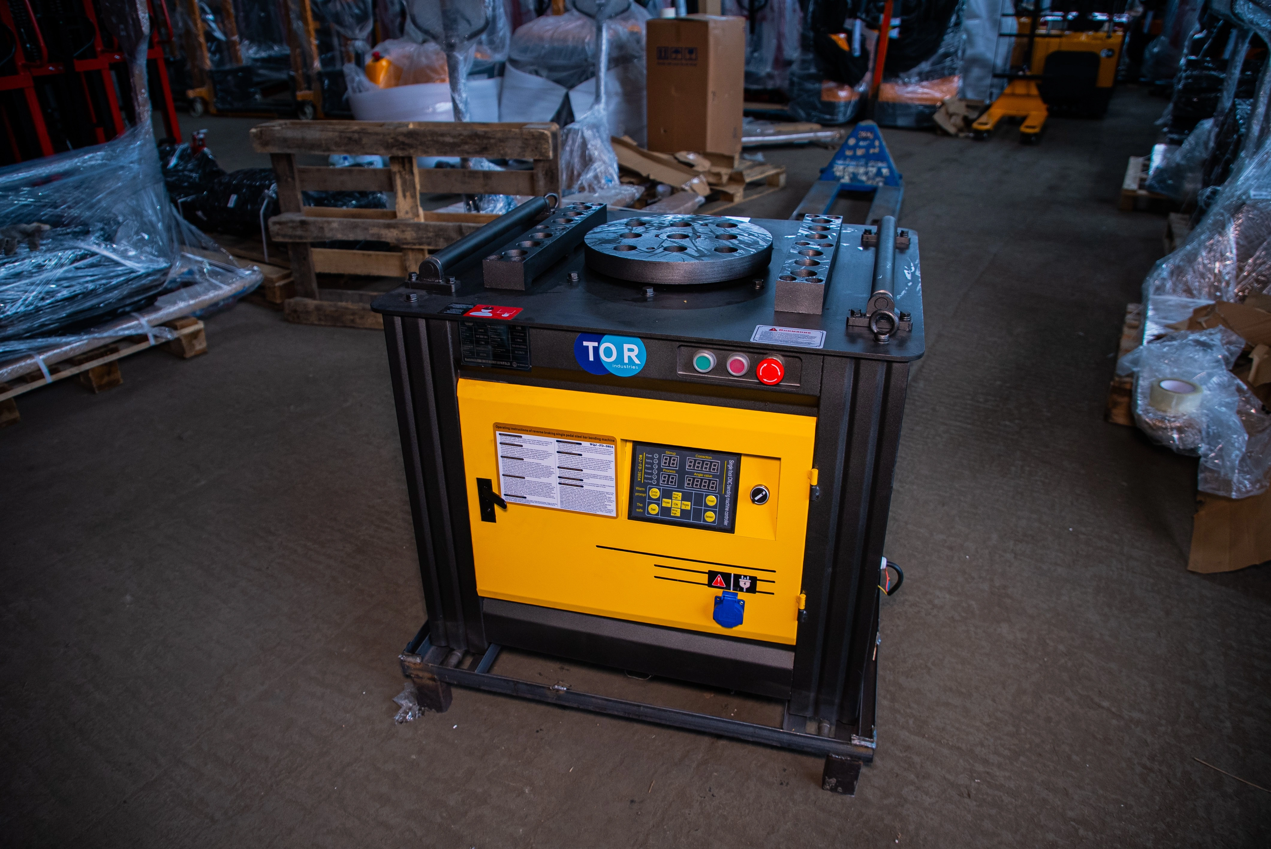 TOR GW40С - цифровая точность, автоматизация и надёжность в гибке арматуры для современного строительства. Станок для гибки арматуры TOR GW40С - профессиональное оборудование с цифровым управлением для высокоточной обработки арматуры диаметром до 40 мм. Мощность 3 кВт обеспечивает стабильную работу даже при интенсивной эксплуатации. Система ЧПУ позволяет программировать до 99 профилей гибки, автоматически регулировать параметры и сохранять настройки для повторяющихся операций. Интегрированный автоматический доводчик гарантирует точное завершение гибки без ручной корректировки. Прочная стальная конструкция и сенсорная панель управления делают станок незаменимым инструментом в условиях строительной площадки или цеха. ! Цифровое управление ЧПУ - программируемые профили гибки, автоматическое запоминание настроек, индивидуальные программы для каждого типа арматуры ! Максимальный диаметр арматуры (ГОСТ 5781-82 и 10884-94): А1 - 40 мм, А3 - 32 мм, HRB400 до 28 мм ! Встроенный таймер циклов - автоматическое отображение количества выполненных гибок ! Предустановка углов - 5–180° с точностью ±0,5° ! Сенсорная панель управления - интуитивные настройки, подсветка, многоязычный интерфейс ! В комплекте набор гибочной оснастки для круглой арматуры диаметром 40/32 мм Где используется? - На строительных объектах для гибки арматуры в монолитном бетоне - В железобетонных цехах и на заводах ЖБИ - При возведении мостов, дорог и крупных промышленных объектов - Для производства каркасов и армирующих конструкций с высокой точностью - В условиях, где требуется серийная гибка арматуры диаметром 40/32 мм Основные преимущества: - ЧПУ-управление - полная автоматизация процесса, сокращение брака до 95% по сравнению с ручными станками - Мощность 3 кВт - надёжная работа с арматурой диаметром до 40 мм - Программируемый доводчик - автоматическое завершение гибки с заданным углом без ручной корректировки - Система сохранения профилей - до 99 предустановленных программ для быстрого переключения между типами работ - Высокая производительность - до 7–9 гибок в минуту в зависимости от диаметра арматуры - Прочная стальная рама - выдерживает интенсивную эксплуатацию, не деформируется - Сенсорная панель управления - интуитивный интерфейс, минимальное обучение оператора - Надёжная система торможения - исключает перекручивание и повреждение заготовки - Компактность - удобная установка даже в условиях ограниченного пространства