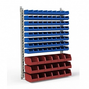 Стеллаж разработан специально для систематизации, хранения различных комплектующих, деталей, запчастей, крепежных и строительных материалов: болты, гайки, сверла, подшипники, метизы, фитинги, сантехника, зажимы, заклепки и т.д.