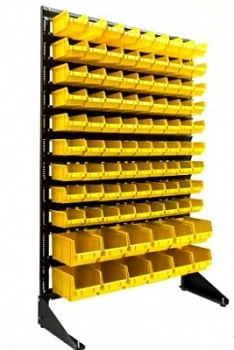 Стенд разработан специально для систематизации, хранения различных комплектующих, деталей, запчастей, крепежных и строительных материалов: болты, гайки, сверла, подшипники, метизы, фитинги, сантехника, зажимы, заклепки и т.д.