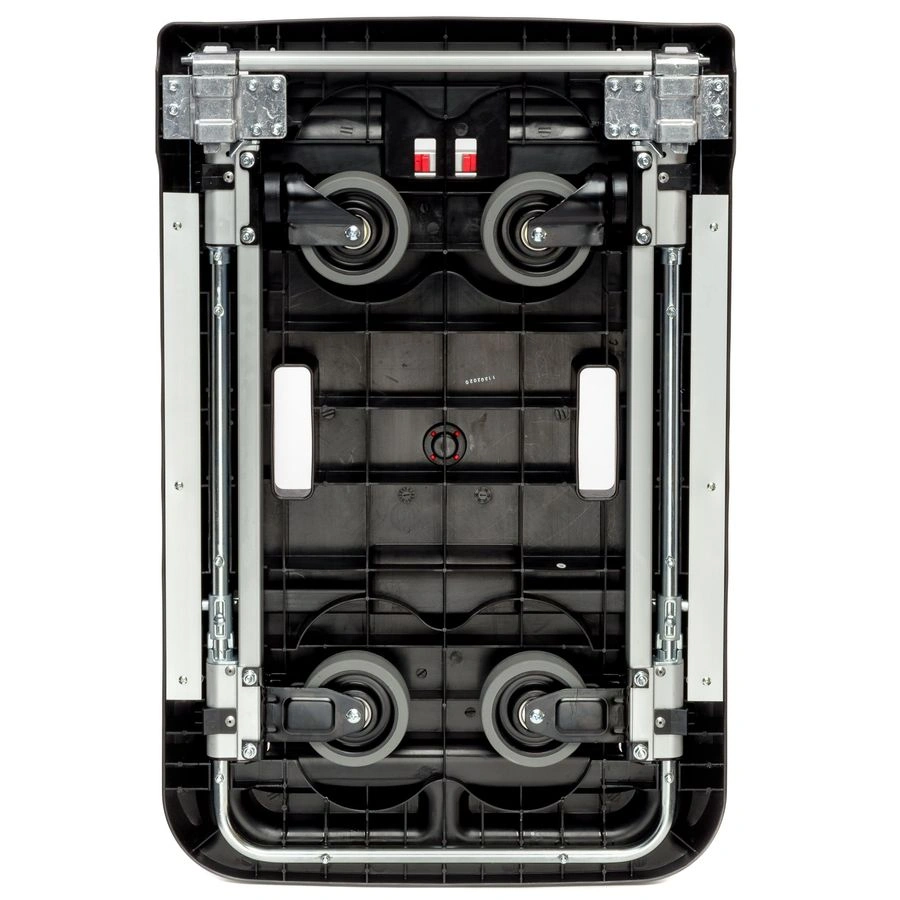 Платформенная складная тележка FF-XL - это удобное приспособление для перевозки упакованных или штучных грузов. Тележка имеет складную конструкцию, поэтому удобна в хранении. Разложить конструкцию можно очень быстро и без лишних усилий. Размер платформы 840х560мм, максимальная высота ручки 980мм., диаметр колес 125мм. При компактных габаритах на тележке можно перевозить грузы весом до 200кг. Складные тележки идеально подходят для транспортировки выставочного оборудования, обслуживания маленьких складов и перевозки грузов в домашних условиях или во время путешествий. За счет узкого профиля и компактных размеров технику легко разместить в багажнике машины.