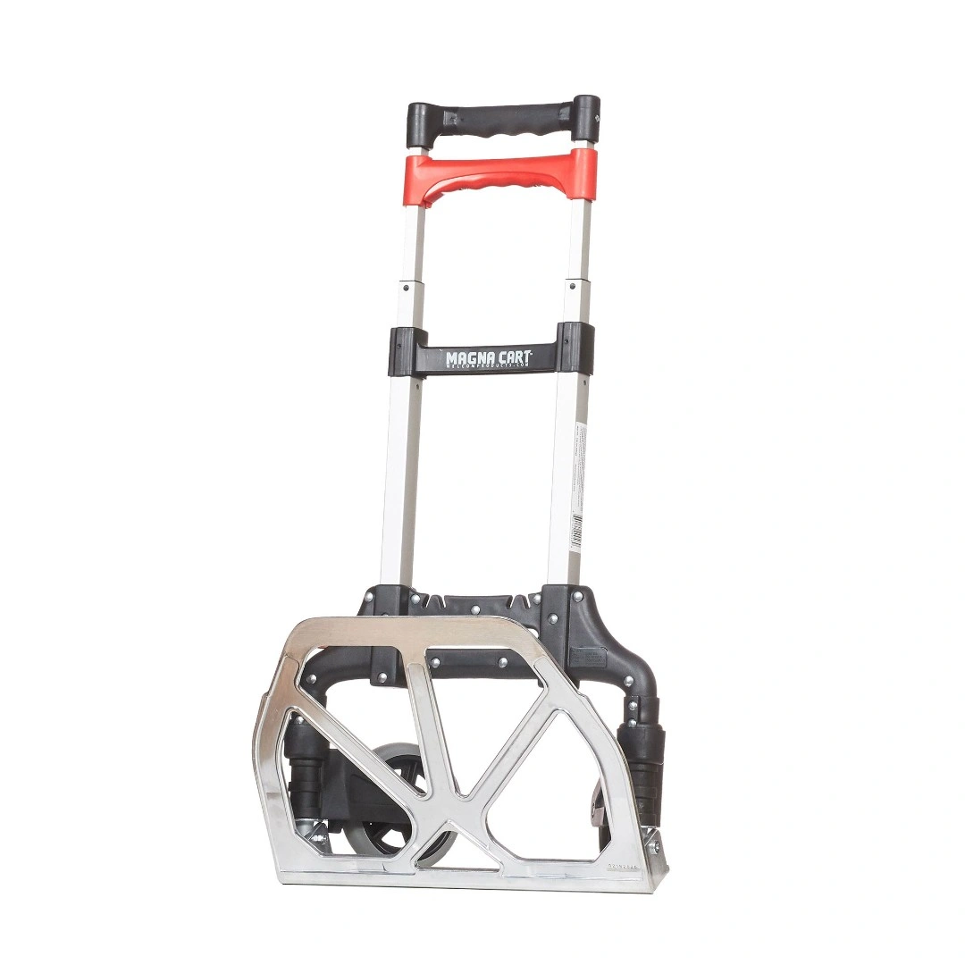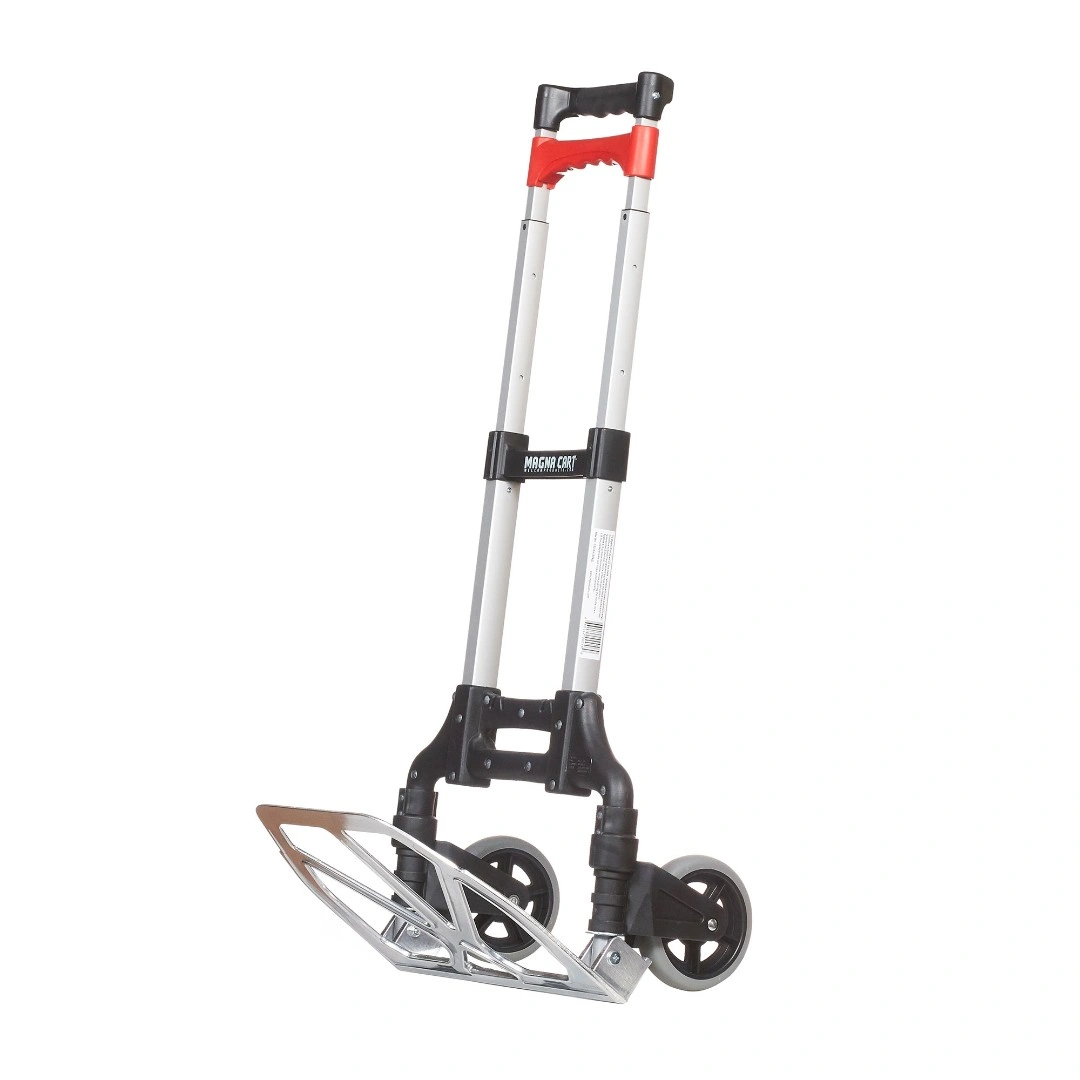 Складная тележка MAGNA CART MCX из алюминия c максимальной грузоподъемностью 68кг. Тележка быстро и удобно раскладывается и собирается за счет сложения телескопической ручки и колес вдоль корпуса. Материал алюминий. Размер площадки 279х387мм, максимальная высота ручки 980мм., диаметр колес 121мм. Складные тележки идеально подходят для транспортировки выставочного оборудования, обслуживания маленьких складов и перевозки грузов в домашних условиях или во время путешествий. За счет узкого профиля и компактных размеров технику легко разместить на полке в самолете или багажнике машины.