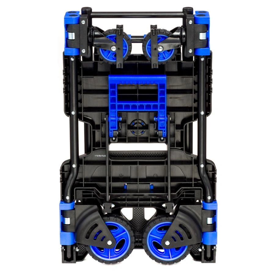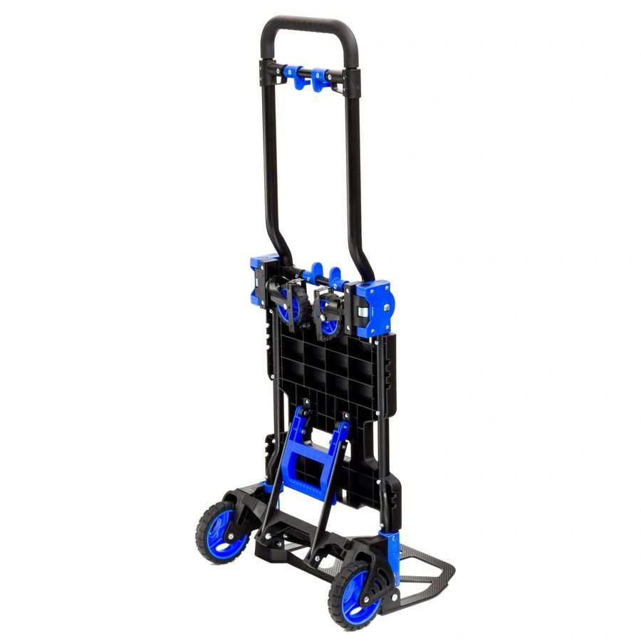 Тележка трансформер MagnaCart FW-90TP складная универсальная тележка предназначена для работы с разного рода грузами. Тележка может использоваться как двухколесная, при необходимости трансформируется в четырехколесную тележку и может использовать в наклонном варианте. Складные тележки идеально подходят для транспортировки выставочного оборудования, обслуживания маленьких складов и перевозки грузов в домашних условиях или во время путешествий. В сложенном виде, за счет компактных размеров тележку можно легко разместить в багажнике машины. Ручка стальная с термопластичной резиной. Платформа - PP (полиуретан). Откидная платформа - сталь. Колеса из термопластичной резины: 2 малых диаметром 90 мм и 2 больших диаметром 125 мм. Высота ручки в рабочем состоянии: в четырехколесном платформенном варианте минимум 685 мм, максимум 920 мм, в двухколесном варианте минимальная высота 1100 мм, максимальная 1340 мм. В двухколесном варианте тележка может перевозить грузы весом до 68 кг. В горизонтальном положении на четырех колесах грузоподъемность тележки до 138 кг. Габариты тележки в сложенном виде 416х450х110 мм. Собственный вес тележки 7,3 кг.