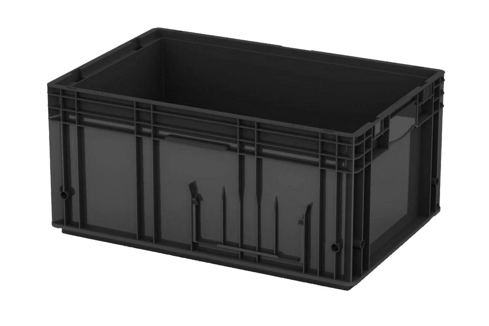 В ассортименте представлены электропроводящие (антистатические) полимерные лотки, ящики и поддоны. Для повышения механической защиты ящик можно дополнить крышкой.