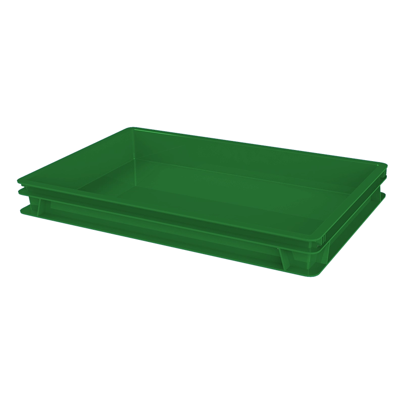 Контейнер со сплошными стенками и дном успешно используется в пекарнях для хранения теста для выпечки и пиццы. Штабелирование ящиков в сплошной версии обеспечивает плотное прилегание ящиков друг к другу и исключает попадание пыли внутрь контейнера.